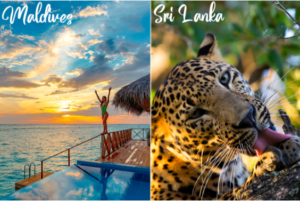 Start with an exhilarating tour of the enchanted island of Sri Lanka and sample our 2000 year old Buddhist culture, our tea gardens and waterfalls, our leopard and sloth bear in the wild, and indulge in our superb cuisine and wellness Ayurveda and spas and experience our warm and hospitable people! Hop on an aircraft from Colombo to Male and in just 1 hour and 10 minutes you are in your Robinson Crusoe paradise!