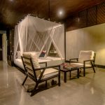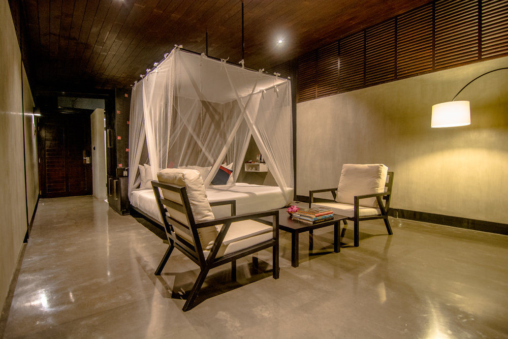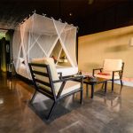 Each room features up-cycled rubber wood lounge chairs, recycled teakwood safari chairs on the balcony, extra-large pillows, 100% cotton, high thread count sheets, coffee and tea making facilities, personal safe and two closets.
