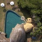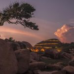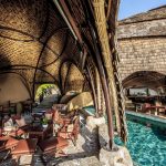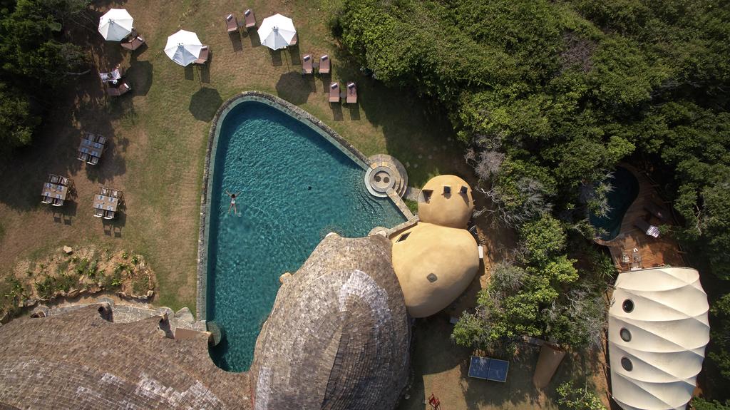 Wild Coast Tented Lodge is adjacent to Yala National Park, renowned for its leopard population. This spectacular luxury tented camp is situated on a rugged, empty beach, overlooking the Indian Ocean. The unique design sees the man-made structures blending seamlessly into the surrounding landscape, thanks to the use of carefully selected natural materials. The use of arched fabric structures allows each of the 28 tents to take on the shape and color of the rocks and boulders that lay scattered nearby, whilst a clever layout in the shape of a leopard’s paw print alludes to the area’s most famous resident. The open-air bamboo-clad Ten Tuskers bar and Dining Pavilion – designed to mirror the boulders scattered across the golden beach beyond – wrap around the resort’s enormous free-form swimming pool. Guests can enjoy creative daily-changing menus of authentic Sri Lankan cuisine in the restaurant, as well as sundowner cocktails and picnics al fresco on the sand dunes, watching dusk settle over the Indian Ocean.